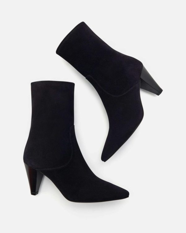 Découvrez nos bottines FLAVIE/VEL en cuir veau noir, alliant style et confort avec leur doublure en cuir chèvre. Parfaites pour compléter un ensemble chic, portez-les avec une robe midi pour un look sophistiqué !