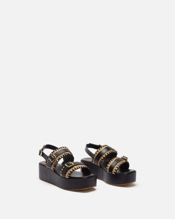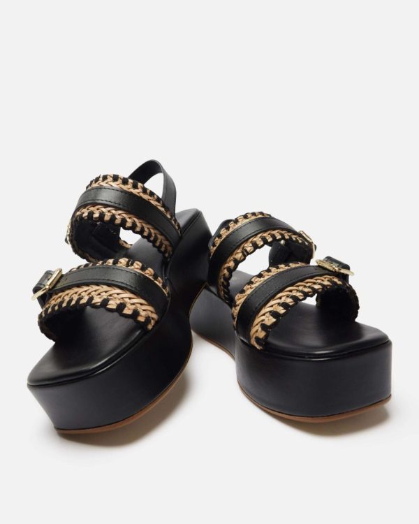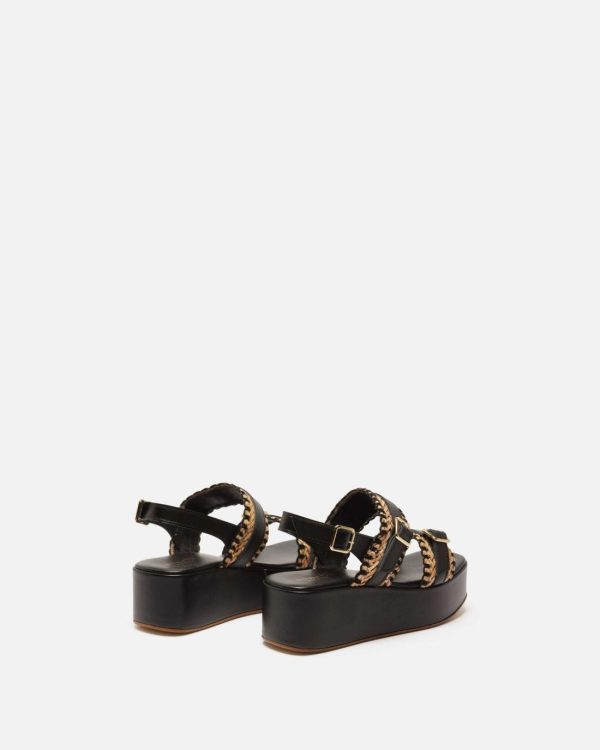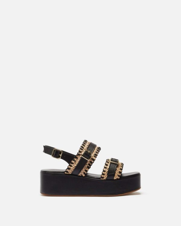 Craquez pour les sandales compensées Liddy noir naturel en cuir veau, fabriquées en Italie. Leur talon de 6 cm et semelle extérieure en Tunit vous assurent un confort optimal toute la journée. Idéales pour un look chic avec une robe ou un pantalon léger.
