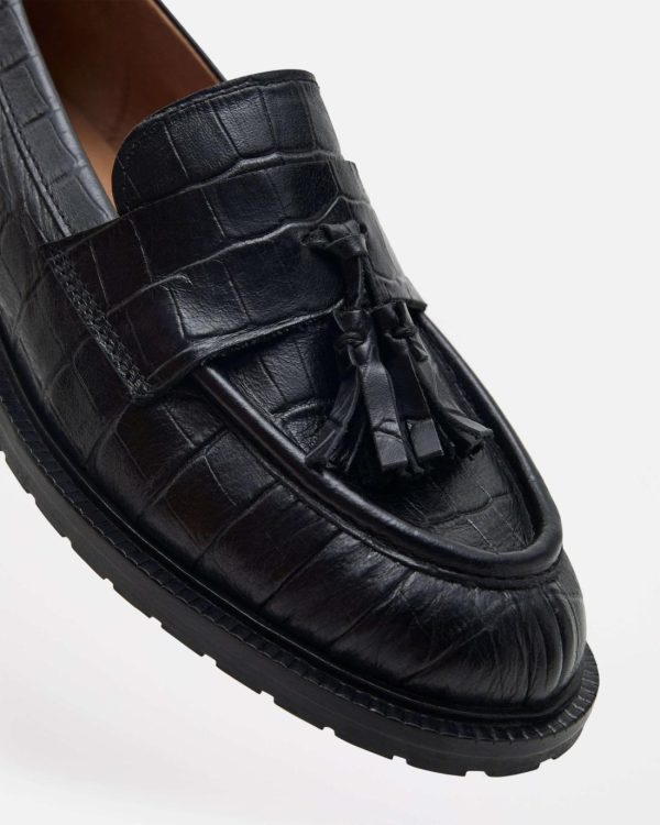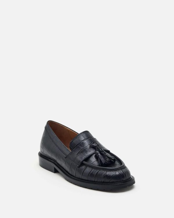 Craquez pour l’élégance intemporelle de nos mocassins Galila en cuir croco noir, fabriqués au Portugal. Conçus en cuir de veau premium, ils s’accordent à merveille avec un pantalon tailleur pour un look chic et raffiné au quotidien.