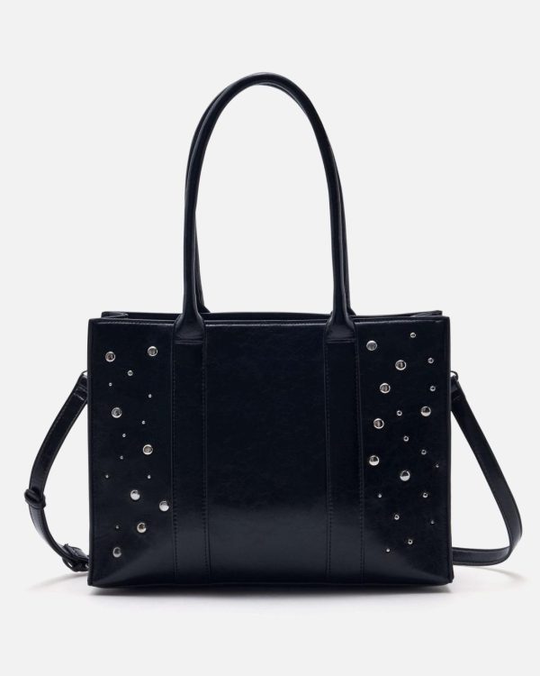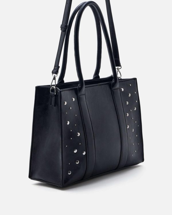 Optez pour l’allure audacieuse du sac grand volume Balia/Stud Noir, idéal pour allier style et praticité. Ses clous métalliques et son espace généreux en font le compagnon parfait pour vos journées chargées. Associez-le à un manteau oversize pour un look résolument chic et affirmé.