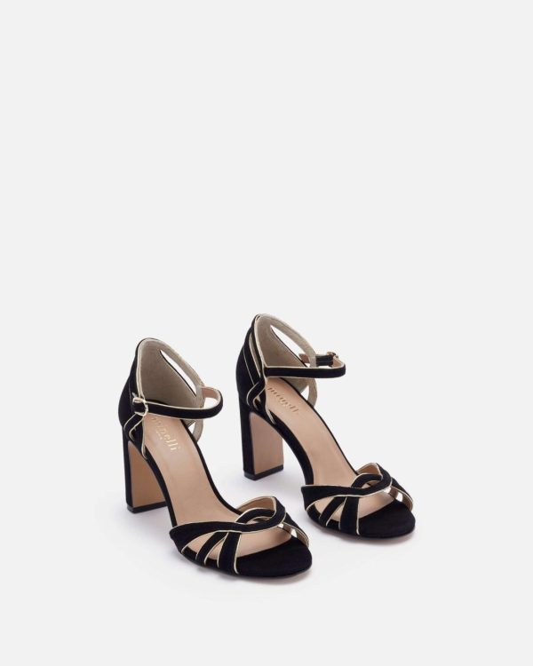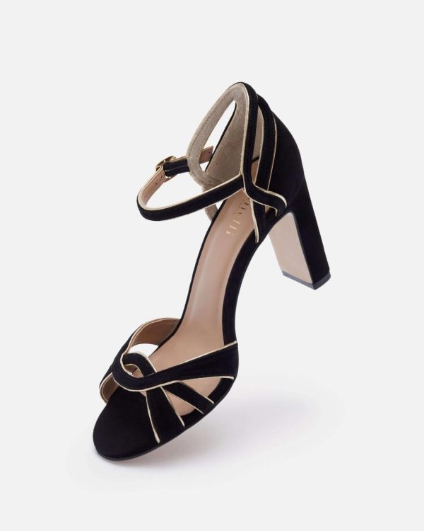 Sandales Femme | Sandales LAMIA Noires En Velours Glamour | Minelli